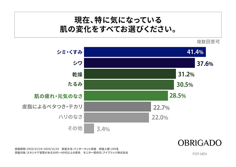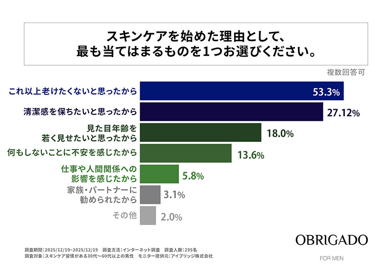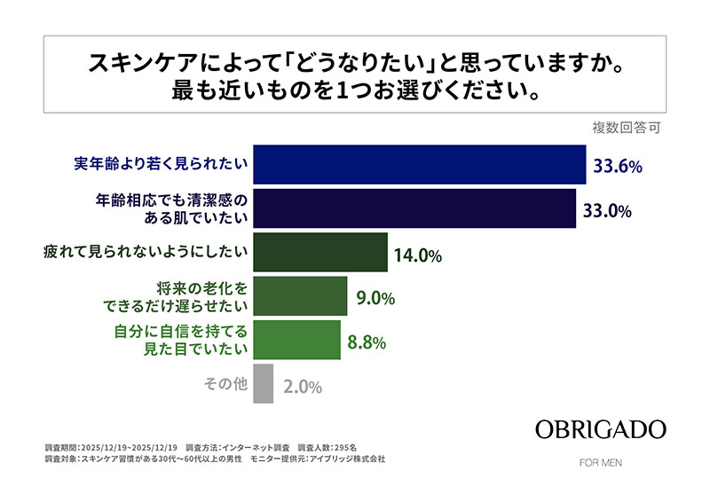 30〜50代男性の約6割が「若返り」より「年齢相応の清潔感」を重視!OBRIGADO(オブリガード)が男性の肌老化とスキンケア意識調査を実施