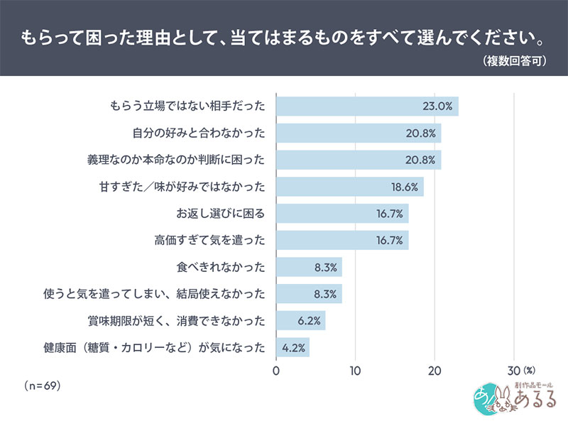 株式会社システムリサーチが運営する「創作品モールあるる」は2026年1月16日、バレンタインギフトをもらった際の「困った経験」に関する意識調査の結果を発表した。