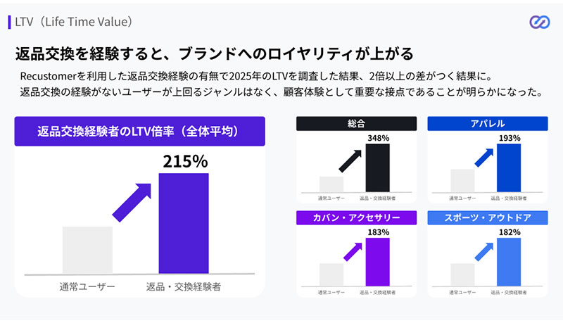 返品・交換を経験したユーザー「LTVが2倍以上」も向上 Recustomer調査