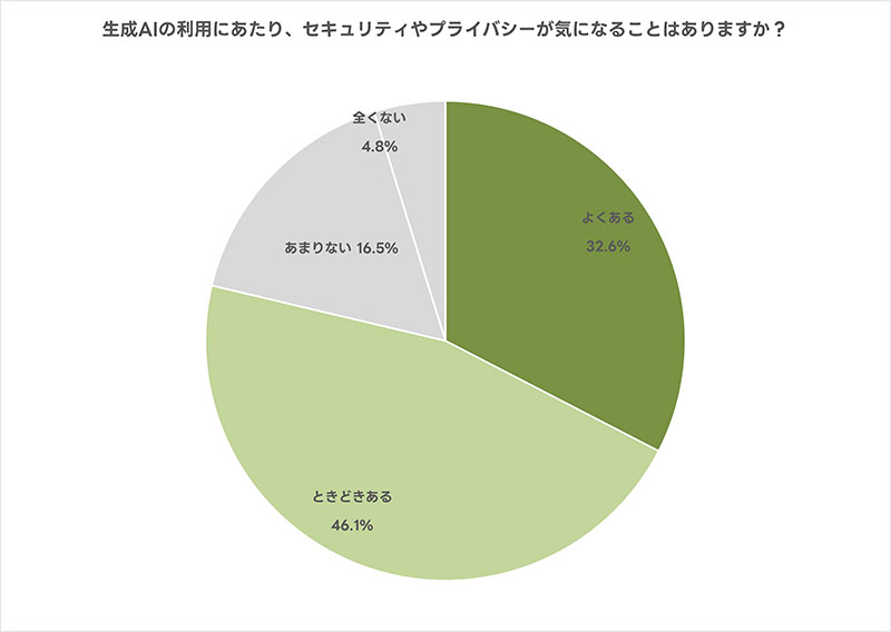生成AIを利用する際、セキュリティやプライバシーが気になることが、「よくある」または「ときどきある」と回答した人は78.7%。多くのユーザーが生成AIに不安を感じながら利用している現状が明らかとなった。