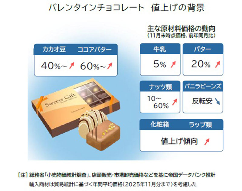 2025年バレンタイン「カカオ高騰」でチョコレート値上げ傾向 TDB調査