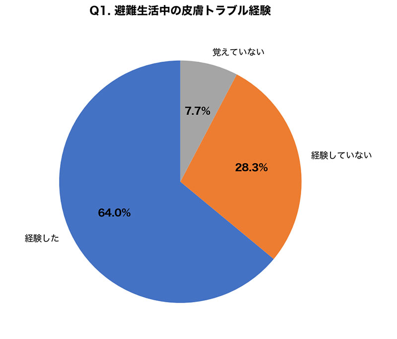 水道、電気、ガスといったライフラインが使えない状況が継続する避難生活は、日常生活以上に皮膚への負担が大きいことがうかがえる。