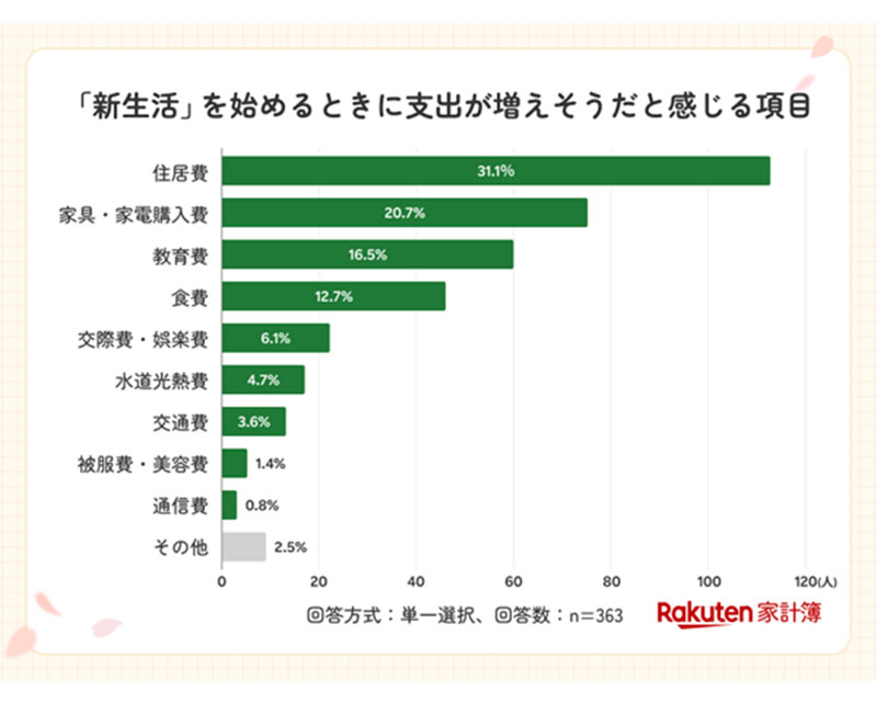 約10%が新生活に対して「出費の増加」を不安と回答 楽天調査