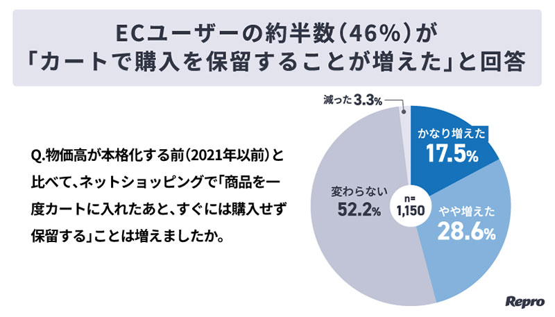 物価高を受けECユーザー約5割が「カートで保留が増えた」 Repro調査