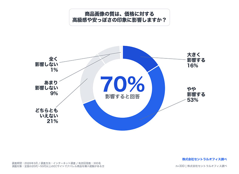 アパレルECの商品画像「価格印象に影響する」消費者の約7割 セントラルオフィス調査