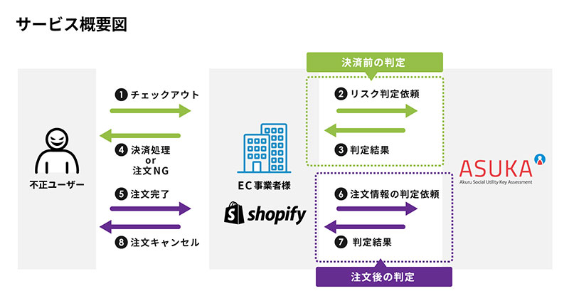 ※画像元:不正対策ソリューション「ASUKA」のShopifyアプリをリリース(株式会社アクル)