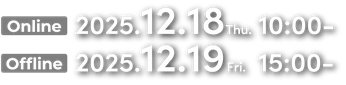 | 日時 | 2025年12月18日 (木) 10:00-17:00 | 2025年12月19日 (金) 15:00-19:30 |