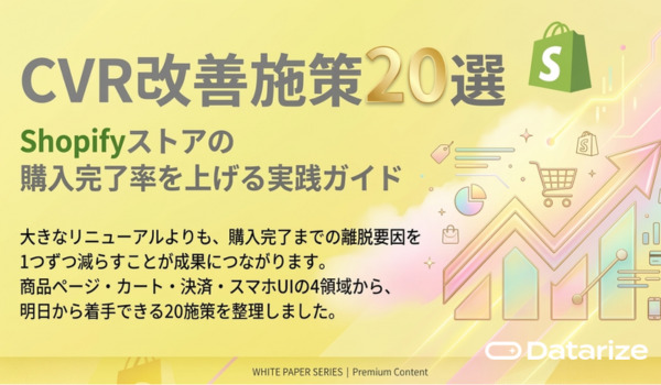 本資料では、Shopifyストアの購入完了率を高めるために、商品ページ・カート・決済・フォーム・スマホUIの5領域から、明日から着手できるCVR改善施策を20個に整理しました。
