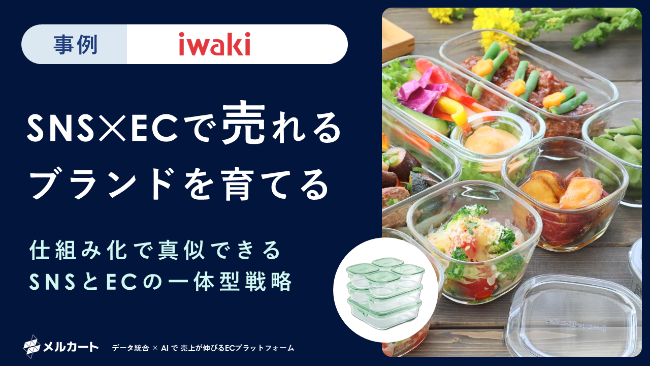 老舗耐熱ガラスブランド「iwaki」がSNSとECを一体化させた戦略を事例として、認知・購入・リピートの各ファネルにおけるInstagram・公式EC・LINEの役割分担と仕組み化を解説しています。 UGCの大量創出(5,000件超)やUGC経由・LINE経由それぞれ売上10%超という成果をもとに、企業視点からの脱却やECサイトのハブ化など、自社で再現できる5つのステップにまとめてご紹介します。