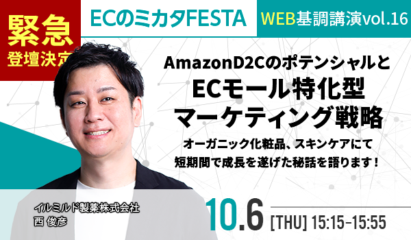10月5日、6日に開催された「ECのミカタFESTA」において、EC通販事業者や今後、EC通販に参入したい方向けに、さまざまな視点から最新のEC通販業界の市場動向やヒントを得られるWEB基調講演が行われました。