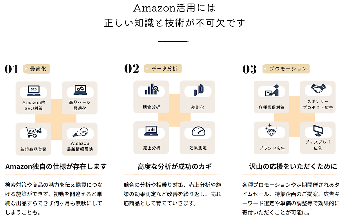 これらはAmazonのページ作成に関するポリシーが、他のサイトに比べてかなり厳しいことに起因しています。先行して運用している仲介サイトの商品情報をそのままAmazonに登録してしまうと、ポリシー違反に該当してしまうことがあるので注意が必要です。