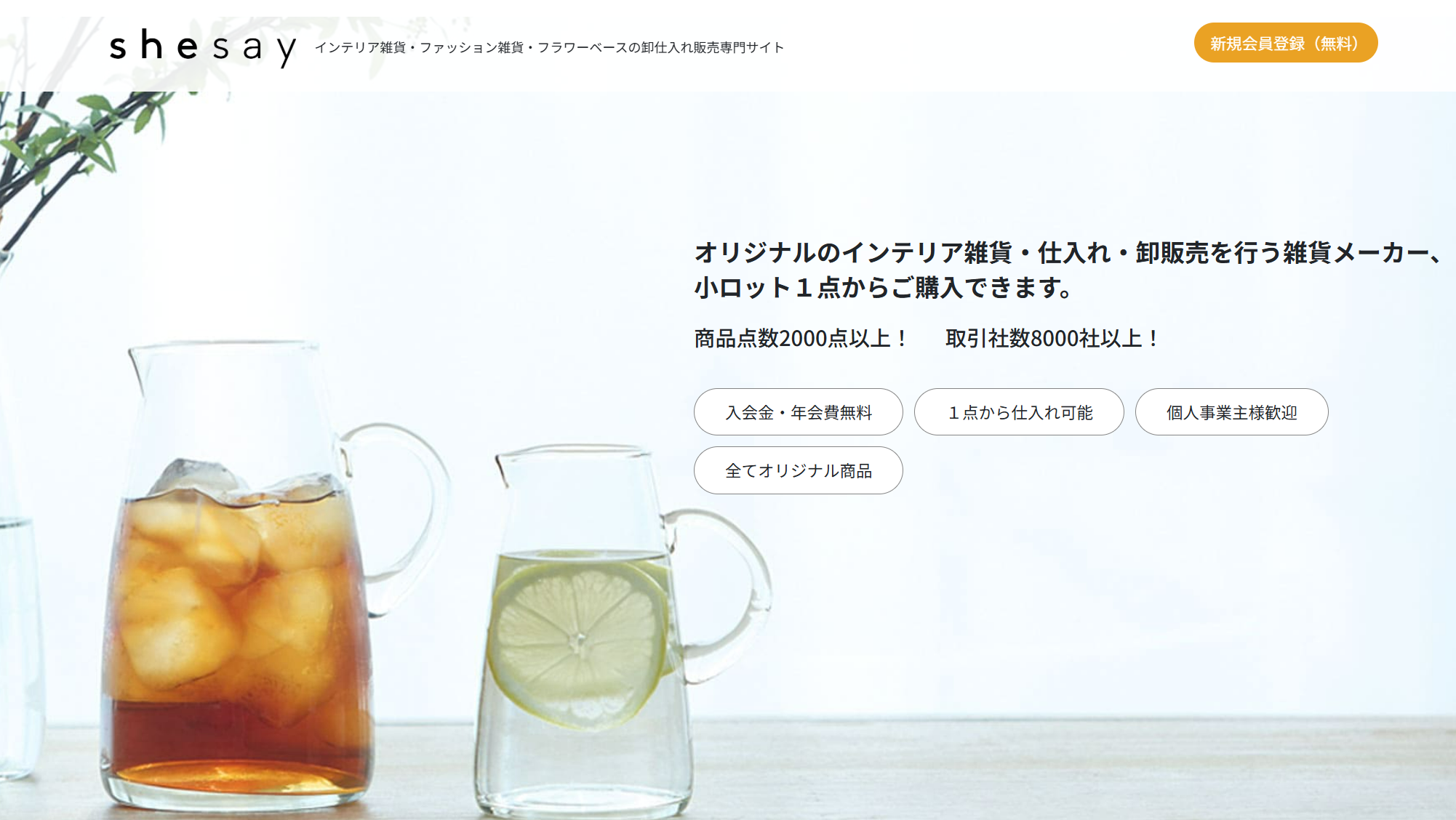 Bカートで構築した卸仕入れ販売専門サイト「shesay」のトップページ