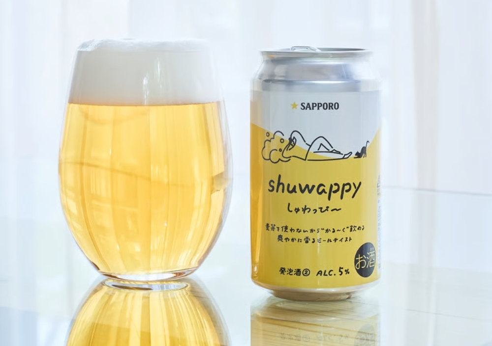 発泡酒「shuwappy(しゅわっぴ~)」。麦芽を使わず、苦みや渋みを抑えたライトで飲みやすい味わいが特徴