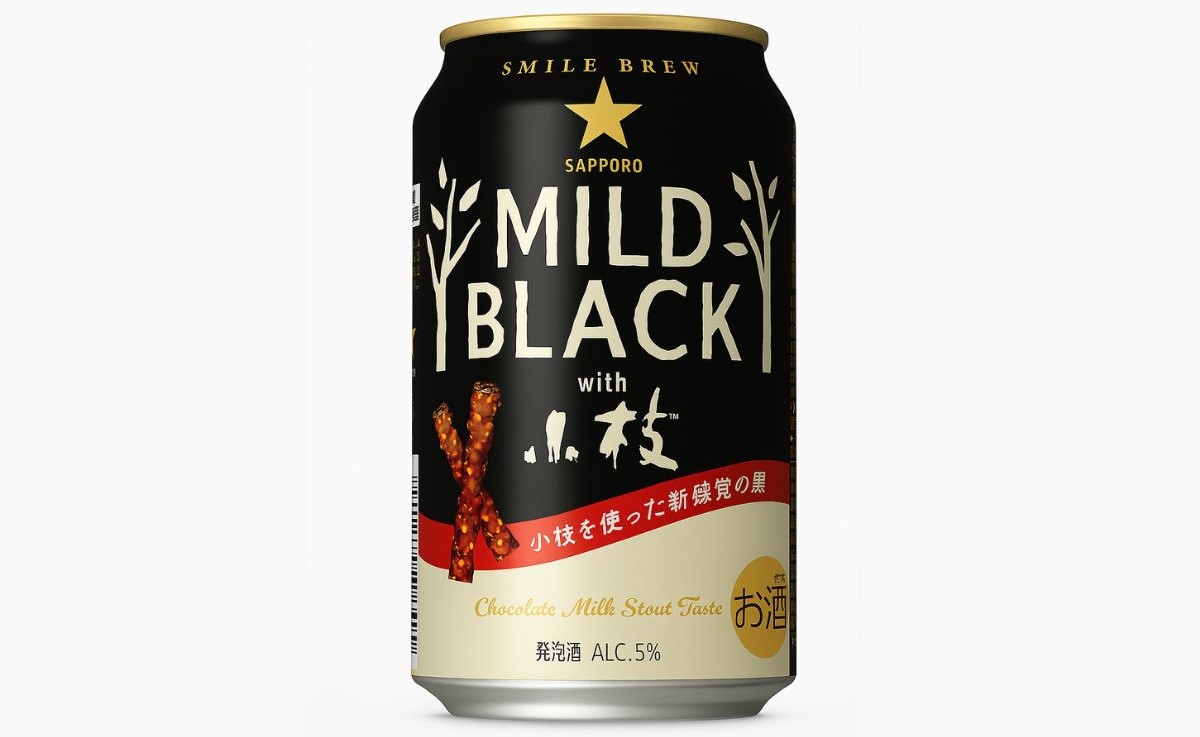 2025年2月発売の「サッポロ MILD BLACK with小枝」 は、森永製菓の「小枝」の製造過程で生じてしまう販売できないお菓子を原料にした共同開発商品