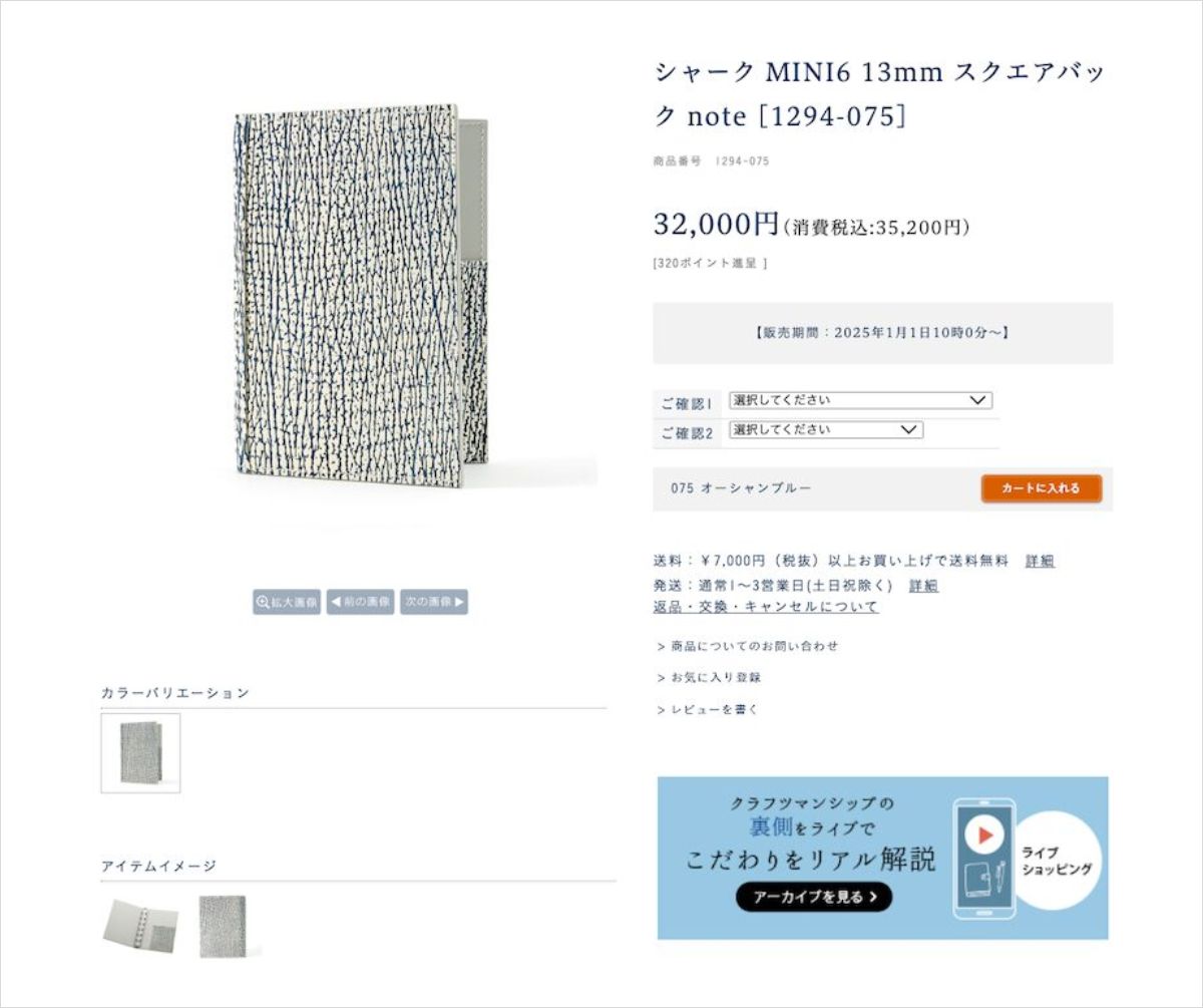 時刻は12時30分。ライブが始まると、向井氏は軽妙なトークで視聴者に語り始めた。今回のライブでは手帳カバーの人気シリーズ「シャルトル」の新作を紹介することを説明し、人気ランキングや商品開発の裏話などを話すことも伝えて視聴者の期待感を高めていく。また、コメント投稿の方法や商品情報を閲覧する方法、ECサイトへ遷移して購入する手順なども説明した。