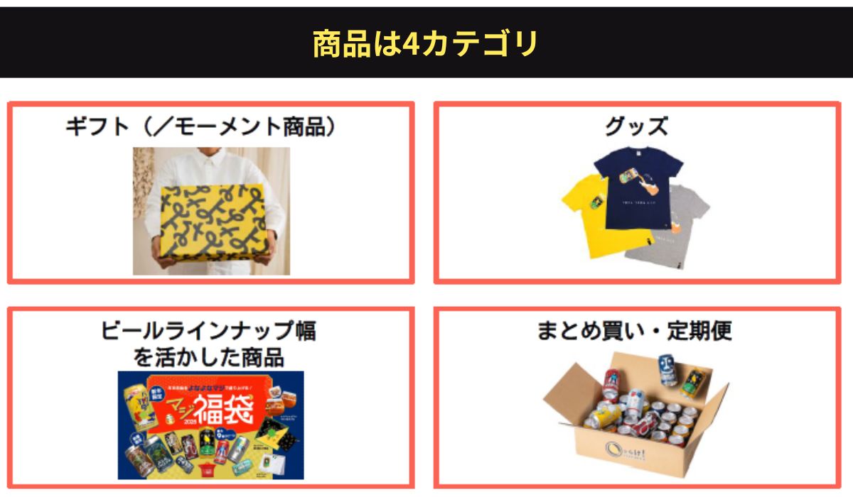 ECサイトでは「父の日」などの定番ギフトから、飲み比べセットや定期便、さらには「卒乳してビール飲めるねセット」といったユニークな企画商品まで幅広く展開。これらはすべて、顧客に特別な体験を提供することを目的に設計されている。