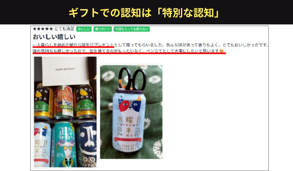 後日、父親がどこかでこのビールを見かけた時、「ああ、娘がプレゼントしてくれたビールだ」ときっと思い出すだろう。この“特別な記憶”こそがリピート購入、そして熱狂的なファン化へとつながっていくのだ。