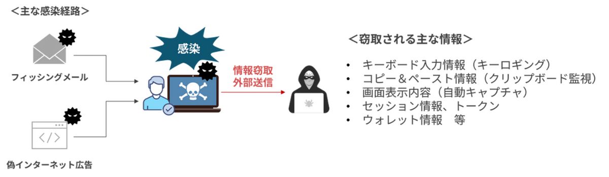 情報窃取に特化したマルウェア「インフォスティーラー」による被害(上図)も増加している