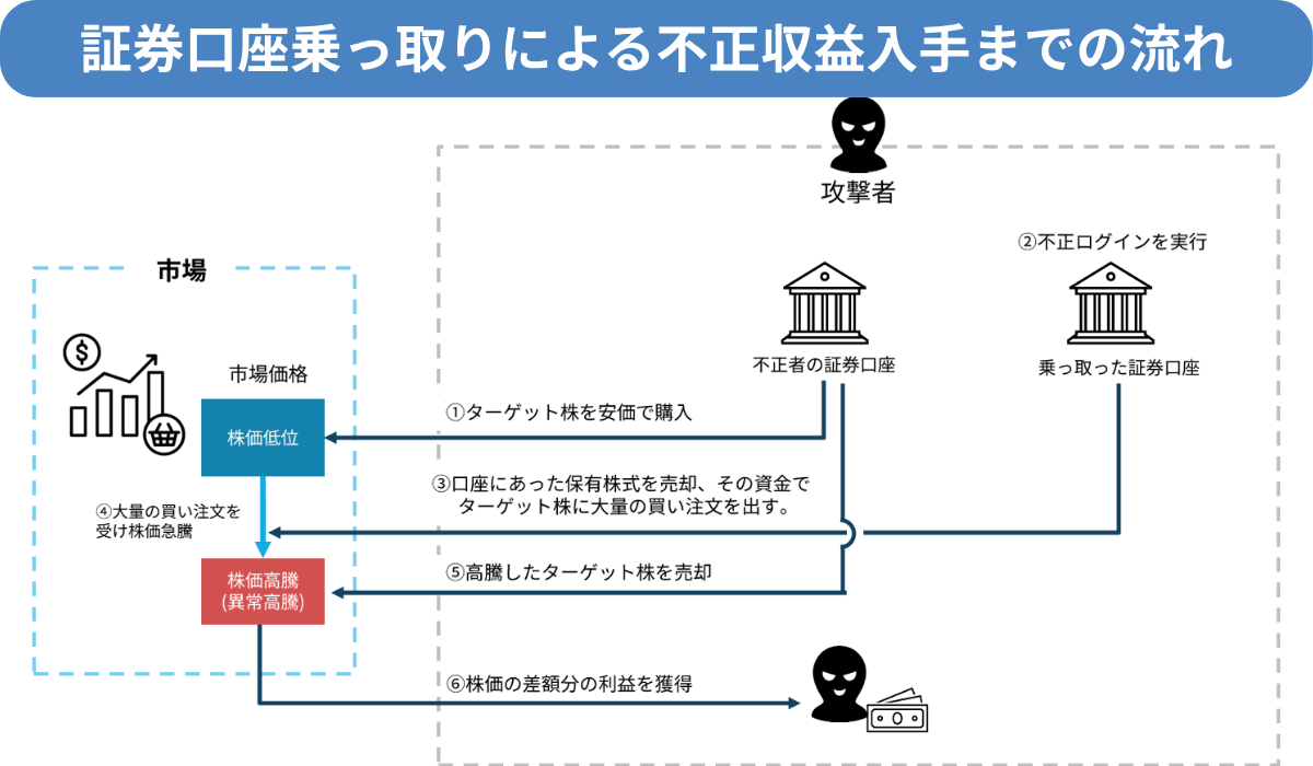 証券口座の乗っ取りは、2025年1月から7月までの間に売却と買付の合計で約6000億円の被害が発生(※3)。「手口は、『フィッシング』や『インフォスティーラー』で認証情報を盗み、不正にログインした上で株式を操作して利益を得るもの」だという。
