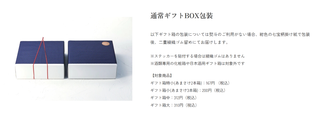 同サイトの売り上げの中心はギフト商品なので、さまざまなギフト商品も企画している。お中元シーズンは小分けに配れるバラエティ豊かなあまさけギフト商品、御歳暮シーズンは法人需要を見込んで高級酒を中心としたセット商品などを企画。また父の日や母の日などの様々な贈り物にはそれぞれに合わせたステッカーや掛け紙を用意し、包装にも注力している。