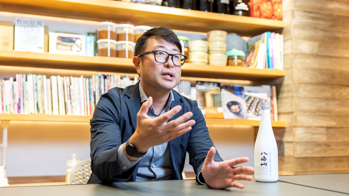 「当社は酒蔵ながら日本酒はもとよりビール・蒸留酒からあまさけ、そして食品まで多岐にわたる商品を販売しています。しかし『八海山は日本酒の会社』という認知が強いので、多岐にわたる商品を製造している状況をお客様に知っていただくことが必要と考え、バラバラに並べられていた商品をブランド別に整理して表現しました」