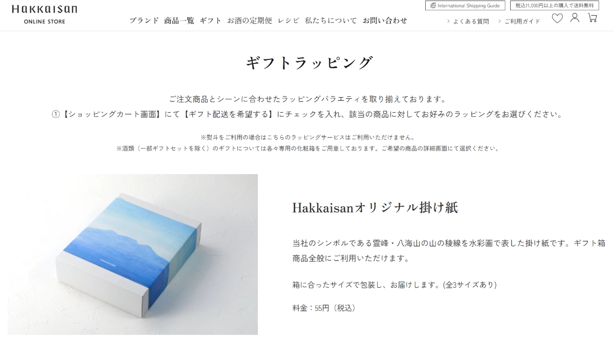 Hakkaisanオリジナルの掛け紙や、ステッカー・二重綾織ゴムなど様々なギフトオプションを用意