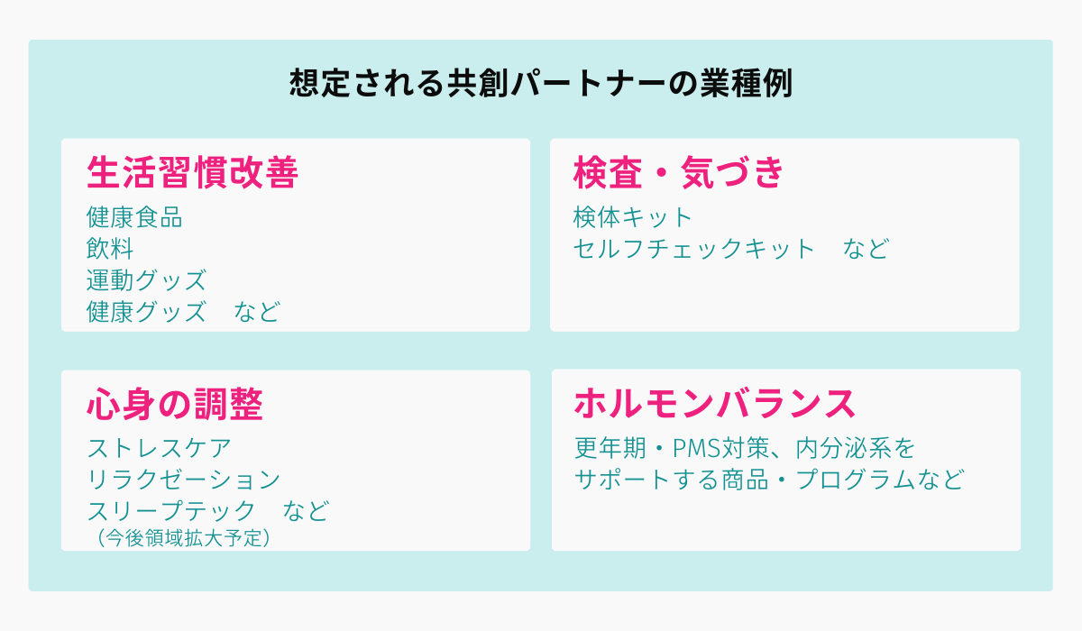 「健康志向の衣類(50代以上の女性向け下着など)、疲労回復効果のあるウェア、靴下など、日常生活で使用するものを提供する企業との連携を考えています。予防的な健康という観点から、さまざまな可能性があります」