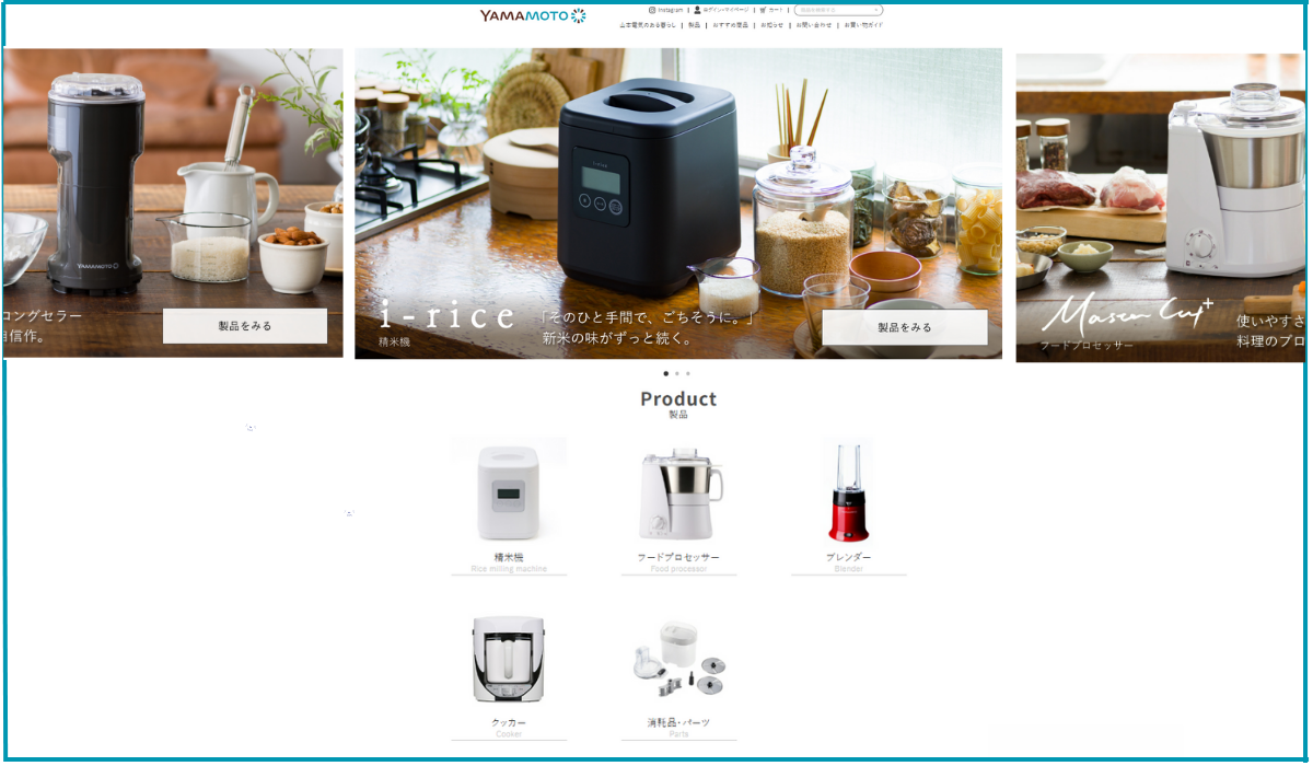 一方で、その技術を直接消費者に届けたいという想いから、「YAMAMOTO」ブランドで精米機やフードプロセッサーなどの調理家電も展開しています。産業用モータの開発で培った緻密な制御技術を活かし、「業務用レベルの高性能」と「家庭での使いやすさ」を両立させています。