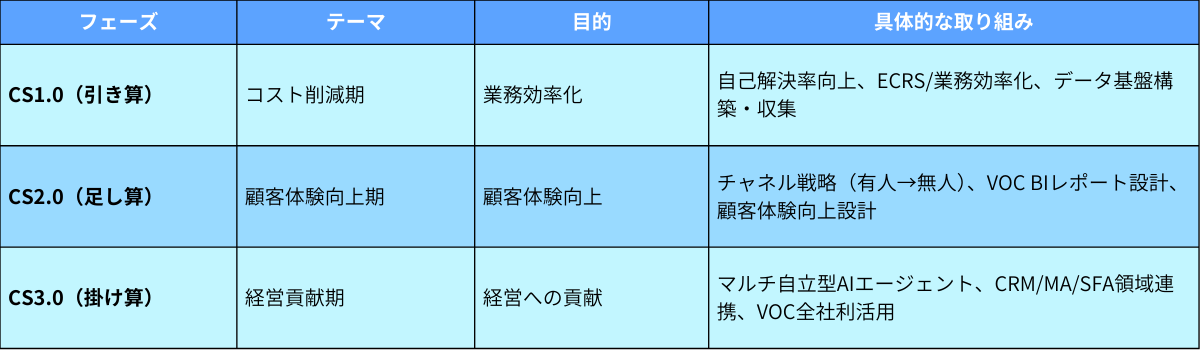 そのプロセスは、「引き算(業務効率化)、足し算(顧客体験向上)、掛け算(経営への貢献)の3段階を経て進化する」(宇都宮氏)と言う。