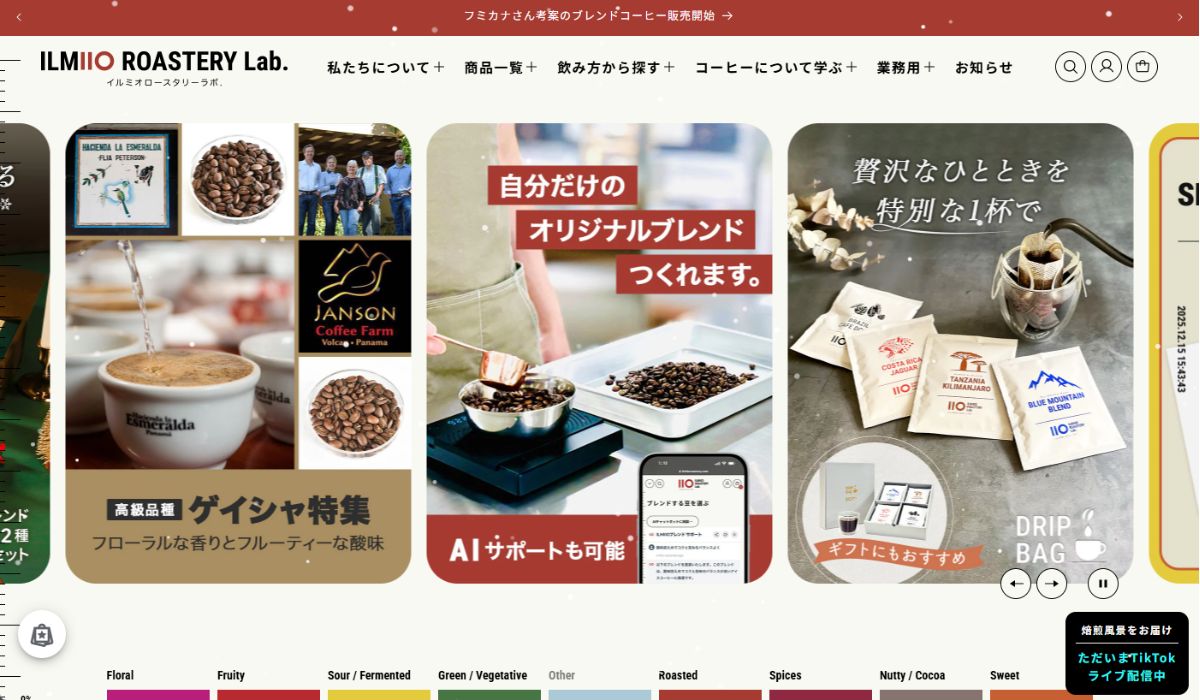 「ILMIIO ROASTERY Lab.」公式サイト。自分だけのオリジナルブレンドコーヒーが作れるサービスも展開している