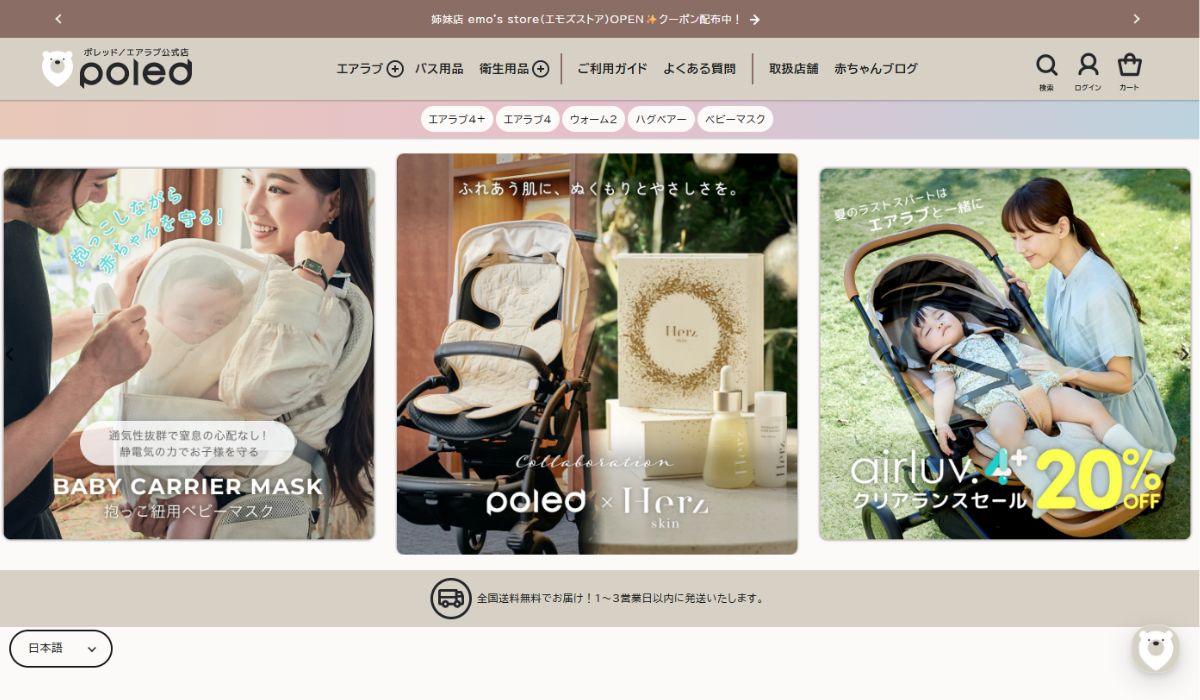 ベビー用品「Poled」の公式サイト。自社サイトや主要ECモールでのオンライン販売はもちろん、実店舗での取り扱いも拡大している