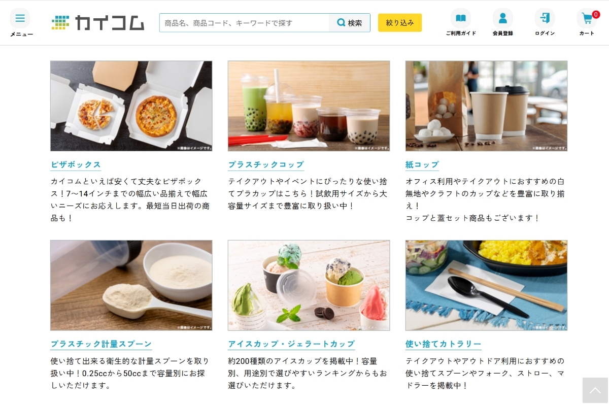 「カイコム」で取り扱う業務用食品容器・包材の数々