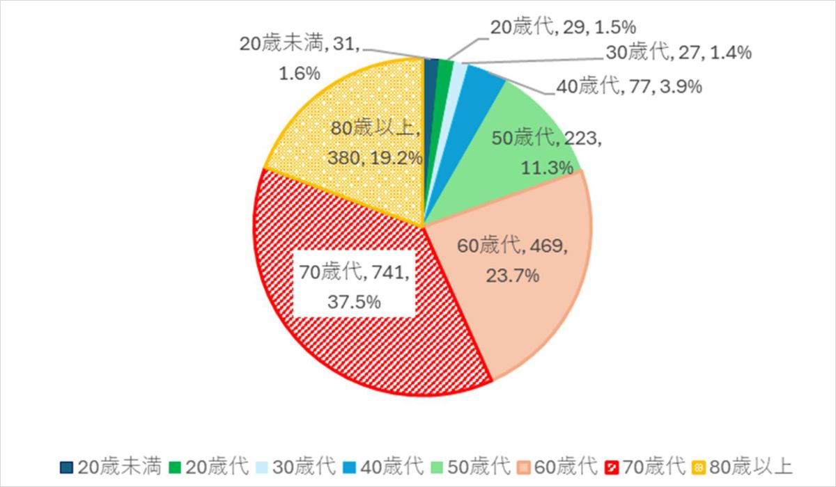 【グラフ2】2024年度における医薬品のネット定期購入に関する相談の契約当事者年代別件数と割合(n=1,977)