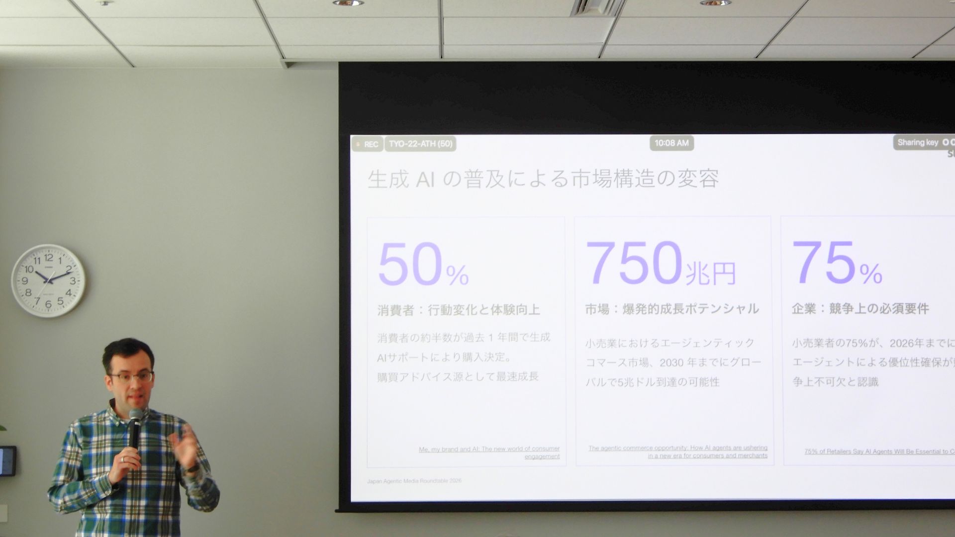 エージェンティックコマースは、消費者がAIエージェントと対話し、商品を比較・選定、場合によっては購入までをAIが担う購買体験。「すでに消費者の50%が生成AIの支援を受けて購買判断を行っており、2030年には市場規模5兆ドルに達する」とヘフェルナン氏は語る。