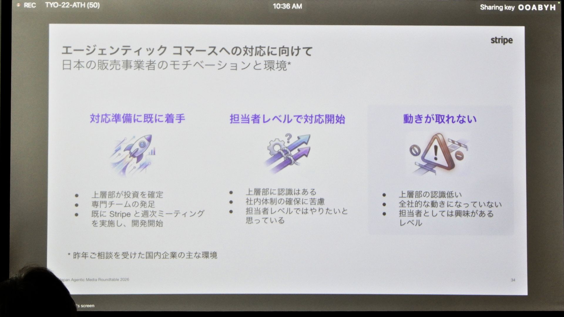 このような情勢のなか、2025年9月の「ACP」公開から4カ月が経過した時点でのエージェンティックコマースをめぐる日本の事業者の対応は、「経営トップ主導で本格投資する層、担当者レベルで模索する層、何から始めるべきかわからない層が、『1:3:4』くらいの体感」と安部氏。