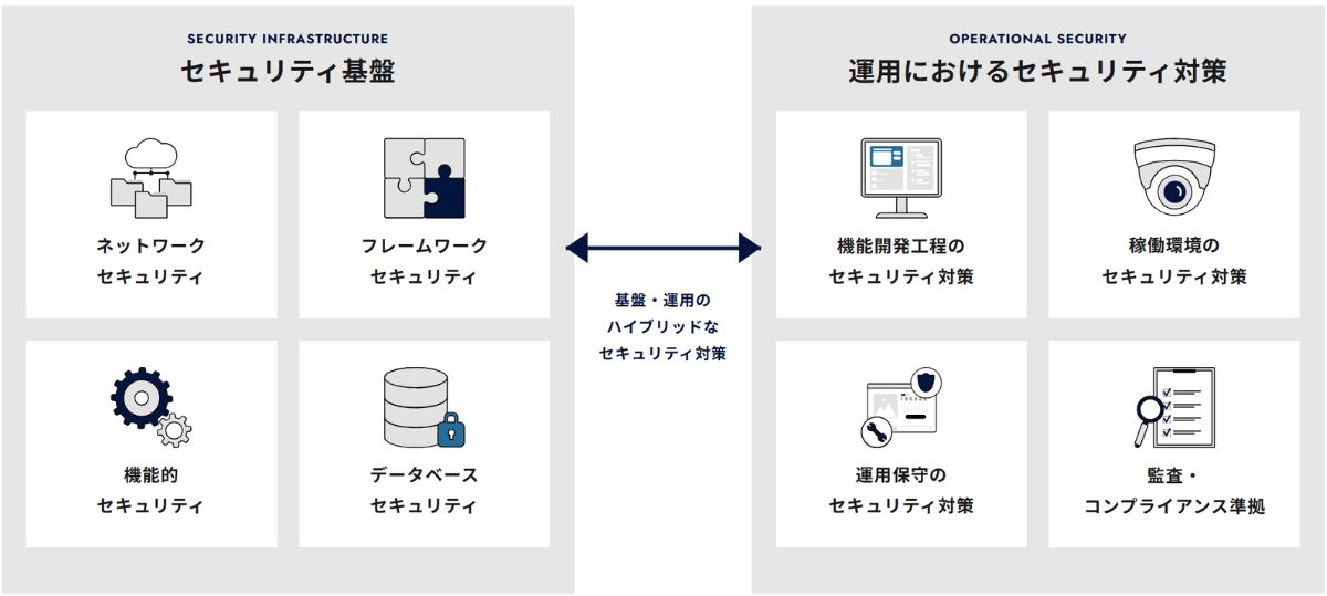 インフラ、アプリケーション、当社での運用、そして導入企業様の運用という4つの側面から、包括的にアプローチしています。インフラ・アプリ面では経済産業省の指針に準拠した多層防御を徹底しており、今日まで不正アクセスによる被害は一度もありません。