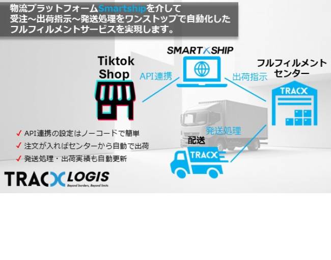 EC物流サービス事業を展開するTracX Logis Japan株式会社(本社:千葉県船橋市)は、2025年7月にTikTok Shopの日本国内販売とフルフィルメントを繋ぐAPI連携機能をプラットフォーム「Smartship」へ実装致しました。