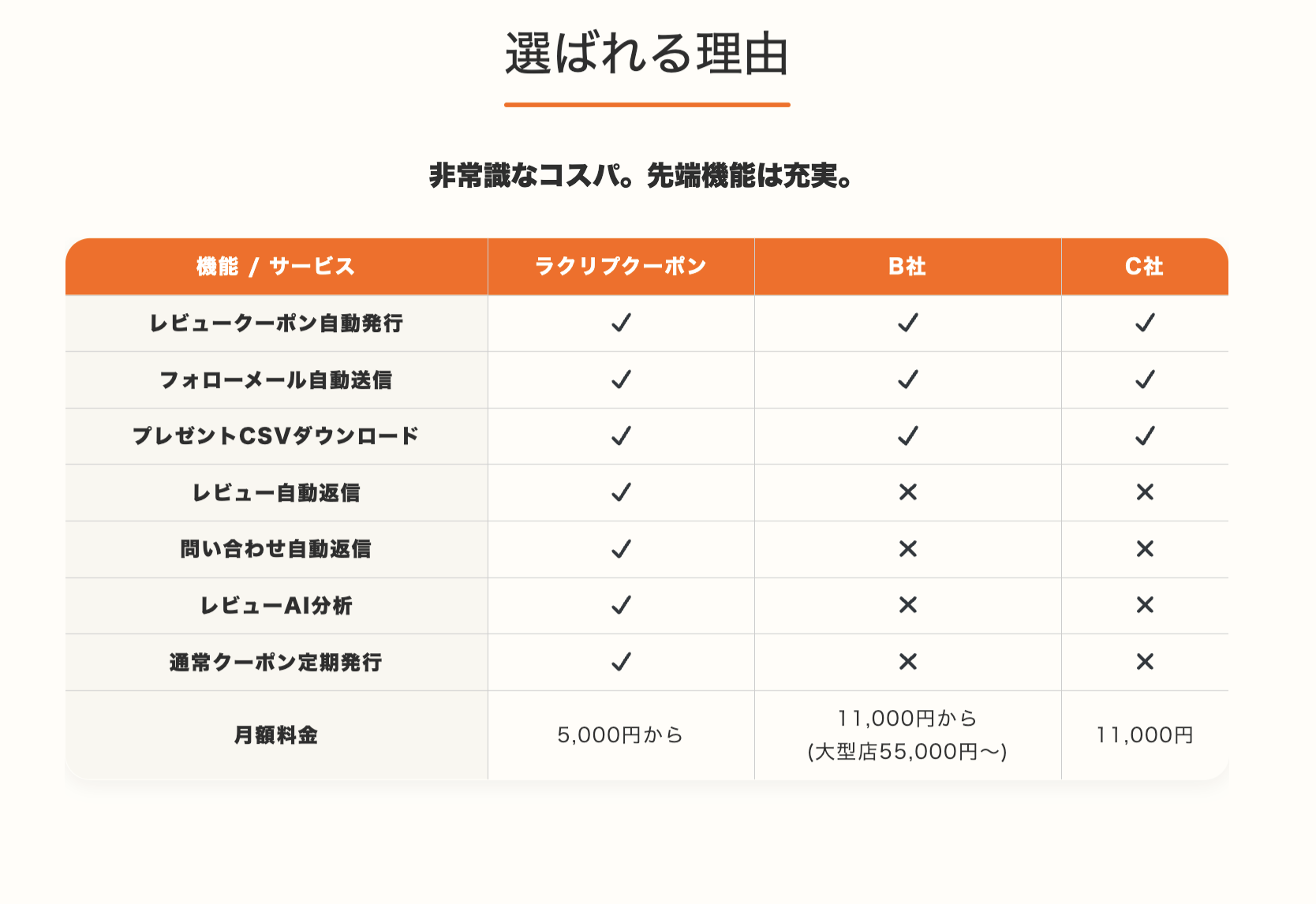 『ラクリプクーポン』は、これらの課題を解決する機能を月額5,000円からという、非常識な挑戦価格で提供します。