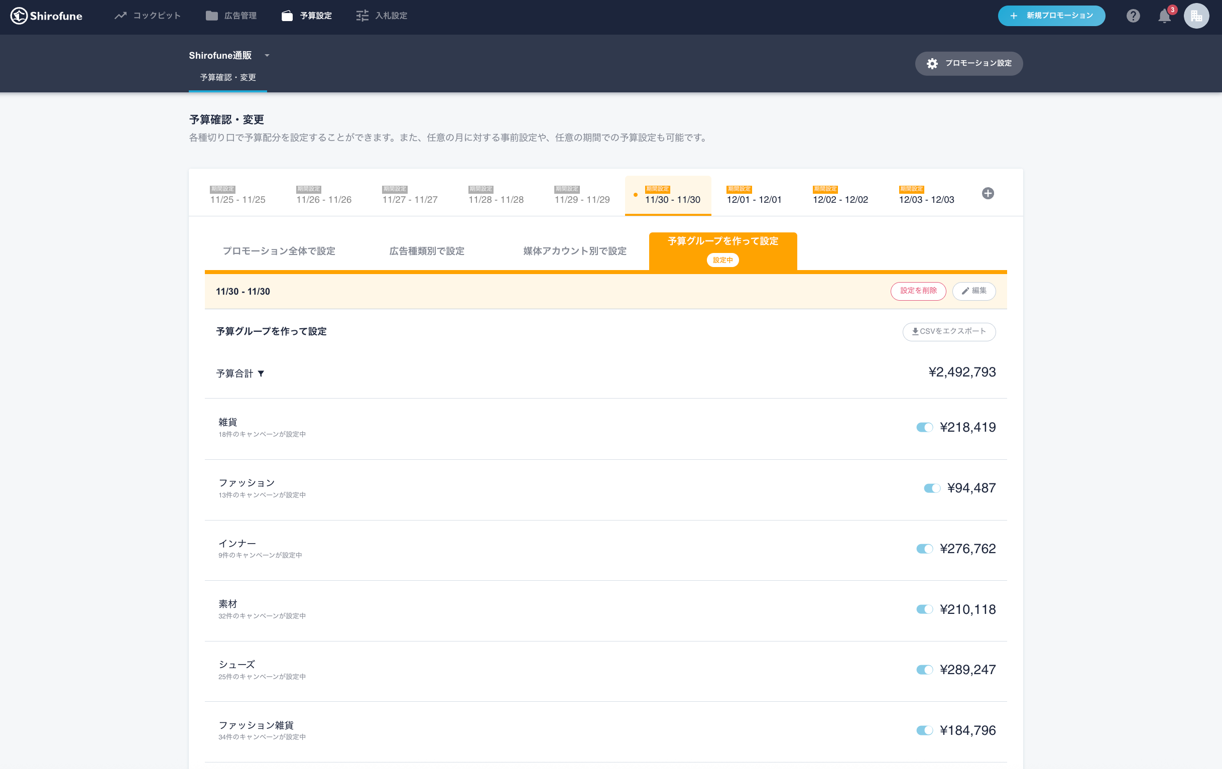 今回の機能によって、Shirofuneは特定のセール日に対して、当日の時間ごとのコスト進捗やパフォーマンス状況を随時見ながら「指定の予算内で売上を最大化する」または「指定のROASを維持しながら売上を最大化」することを自動で行うことが可能になり、業務工数の大きな削減とワークライフバランス改善、および人ではできないレベルでの細かな入札調整によりパフォーマンスの改善を実現します。