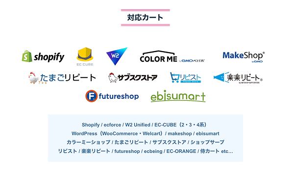 ショップサーブ / リピスト / 楽楽リピート / ecbeing / 侍カート / EC-ORANGE etc…