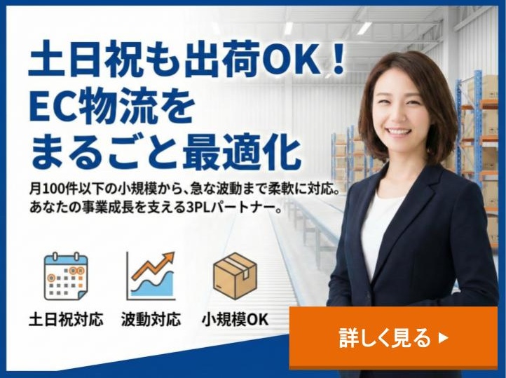 在庫管理から梱包・発送まで、EC物流をまるごと代行。 面倒な作業をワンストップでお引き受けします。 土日祝の出荷対応や月100件以下の小規模スタートなど、お客様の事業フェーズに合わせた柔軟な運用体制で、EC事業の成長を強力にバックアップします。