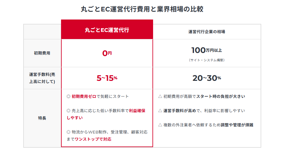 丸ごとEC運営代行費用と業界相場の比較